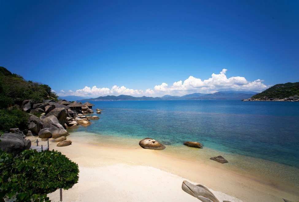 Nằm trên bán đảo xinh đẹp và nổi tiếng của vịnh Nha Trang với những tảng đá ấn tượng nhìn ra biển Đông, Six Senses Ninh Vân Bay Resort được xem là một trong những ốc đảo đẹp nhất Nha Trang mà bất kỳ du khách nào cũng sẽ bị vẻ đẹp quyến rũ của khu ngỉ dưỡng này lôi cuốn. Bãi biển cát trắng trải dài, những ngọn núi cao xanh chót vót làm tăng cảm giác thân thiện với thiên nhiên.